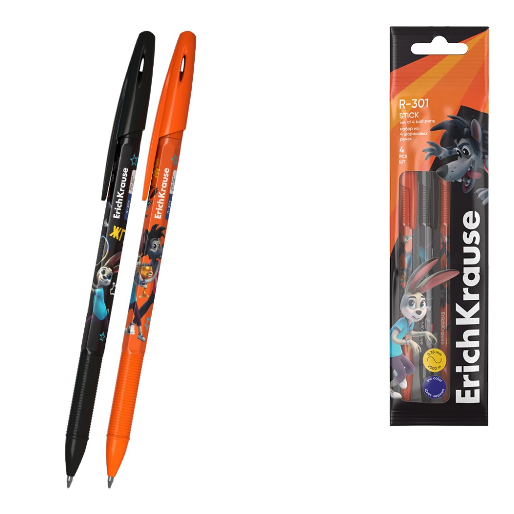 Набор из 4 ручек шариковых ErichKrause R-301 Stick Ну, Погоди! Каникулы 0.7, цвет чернил синий (в па