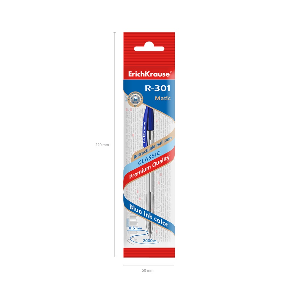 Ручка шариковая автоматическая ErichKrause R-301 Matic Classic 1.0, цвет чернил синий (в пакете)