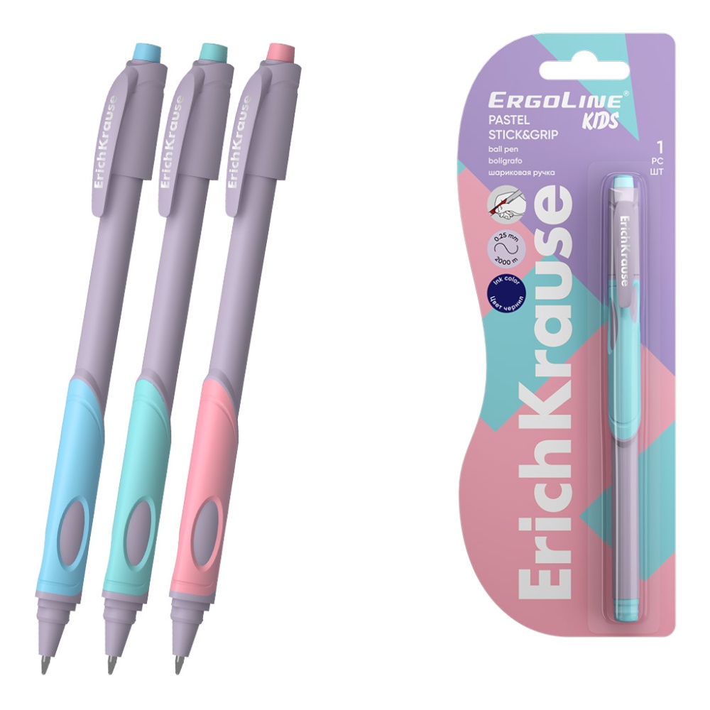 Ручка шариковая ErichKrause ErgoLine с эргоном. хватом Пастель 0.5, технология суперскольжения, цве