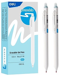 Ручка гелевая стираемая, автомат. Deli синяя, 0,5мм