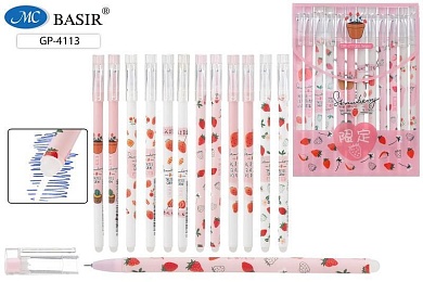 Ручка гелевая стираемая Basir "Клубника" синяя, 0,5мм