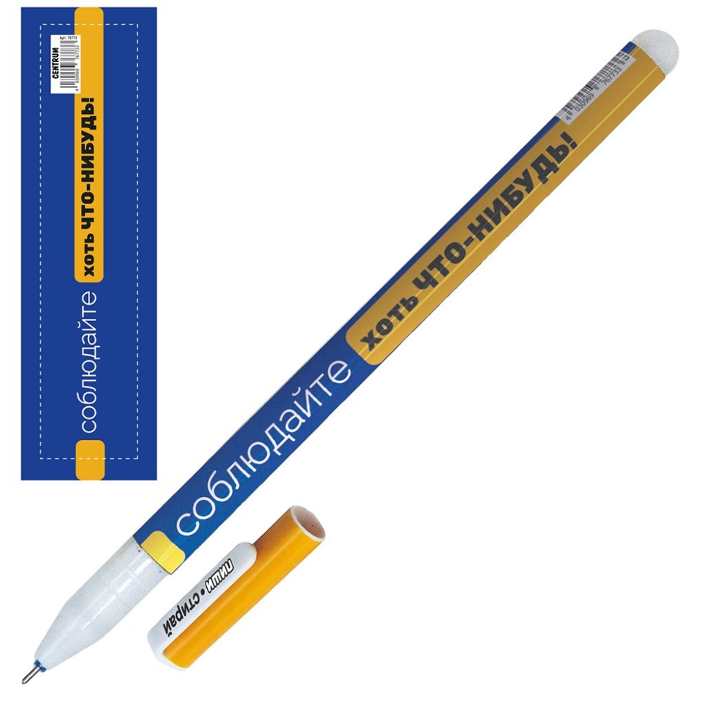 Ручка гелевая стираемая Centrum "Соблюдайте хоть что-нибудь" синяя, 0,5мм