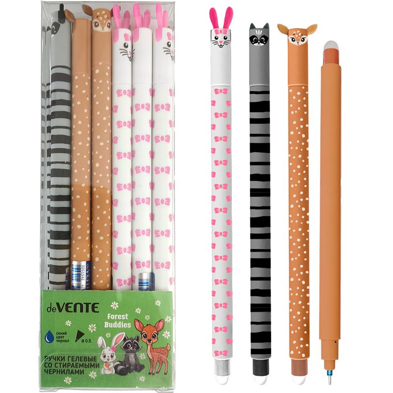 Ручка гелевая стираемая "deVENTE. Forest Buddies" d=0,5 мм, корпус с эффектом Velvet-Touch, цвета корпуса ассорти 3 цвета, с декоративными элементами и запечаткой на колпачке и корпусе, с ластиком, сменный стержень, индивидуальная маркировка, синяя