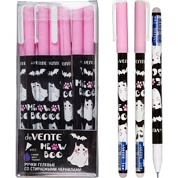 Ручка гелевая стираемая "deVENTE. Ghost Meow" d=0,5 мм, 2 дизайна корпуса ассорти, с ластиком, сменный стержень, индивидуальная маркировка, синяя