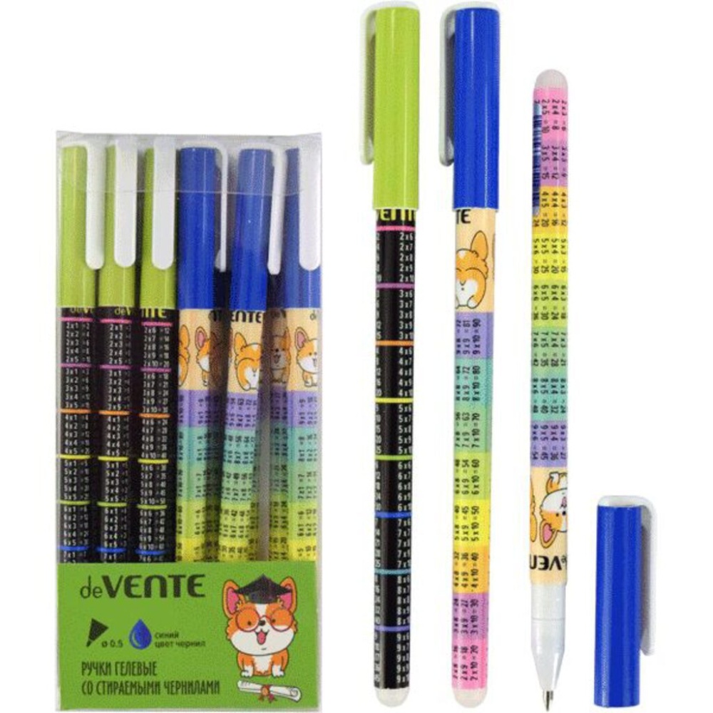 Ручка гелевая стираемая "deVENTE. Пиши-стирай. Таблица Умножения" d=0,5 мм, 2 дизайна корпуса ассорти, с ластиком, сменный стержень, индивидуальная маркировка, синяя