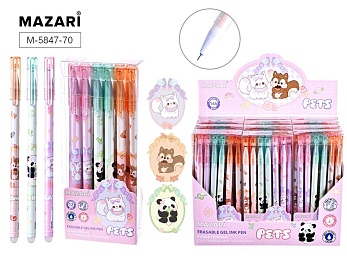 Ручка гелевая стираемая MAZARI "Animal" синяя, 0,38мм
