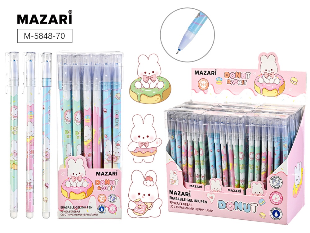 Ручка гелевая стираемая MAZARI "Donut rabbit" синяя, 0,38мм