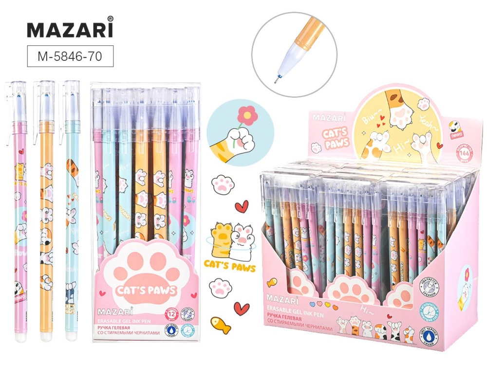 Ручка гелевая стираемая MAZARI "Лапки" синяя, 0,38мм