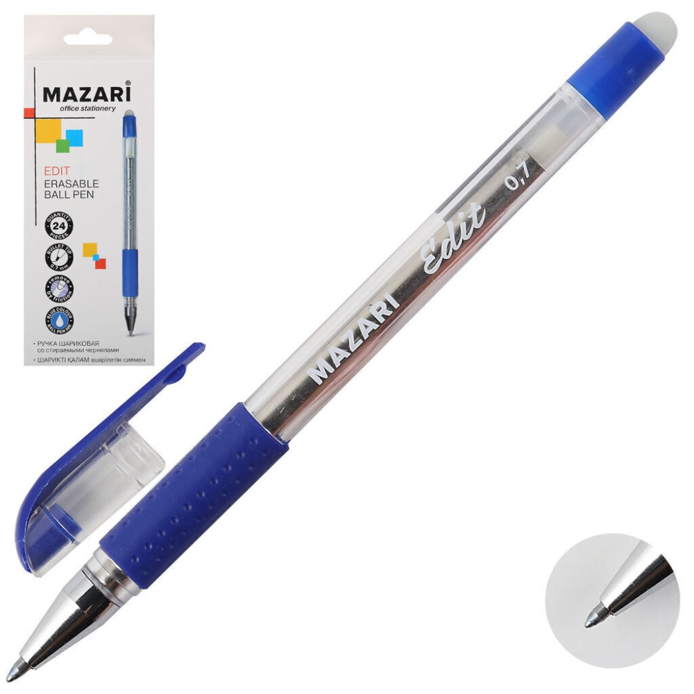 Ручка шариковая стираемая MAZARI "Edit" синяя, 0,7мм, стержень 122мм