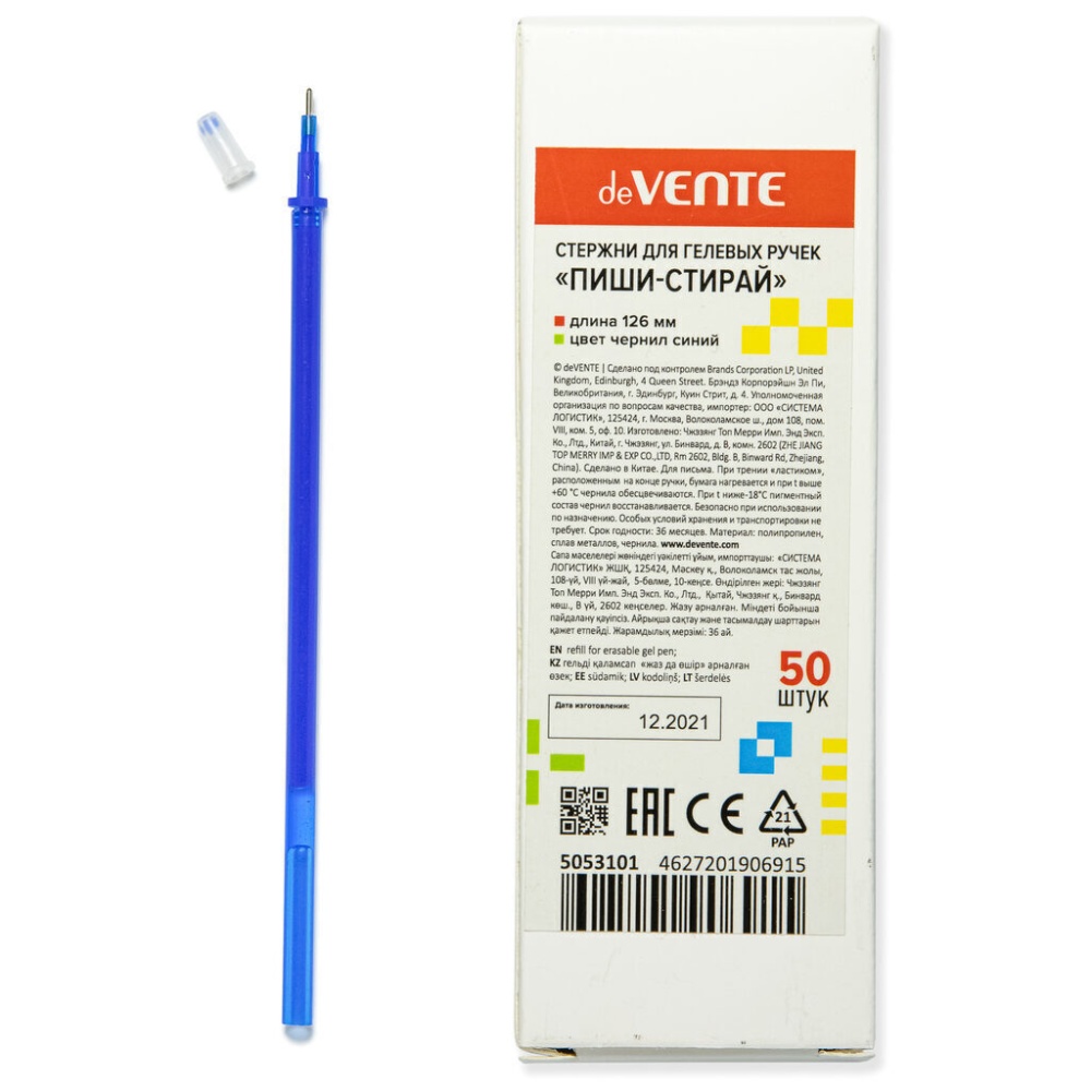 Стержень гелевый стираемый deVENTE синий, 0,5мм, 126мм