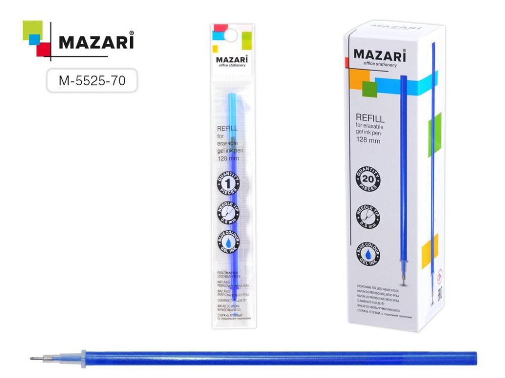 Стержень гелевый стираемый MAZARI синий, 0,5мм, 128мм, для ручки М-5524