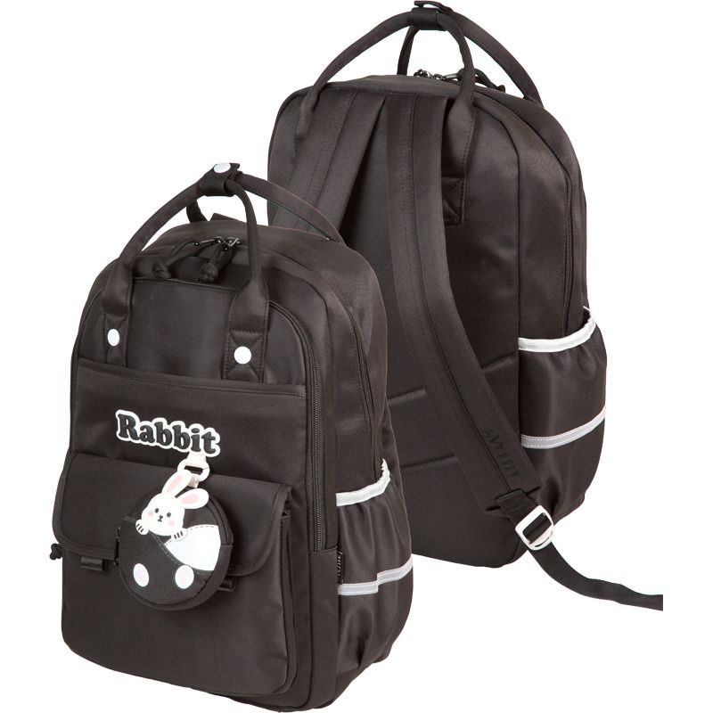 Рюкзак "deVENTE. Rabbit" подростковый 39x27x17 см (15 л) вес 500 г, высококачественный нейлон, двойные ручки, уплотненная спинка и уплотненные лямки, 2 отделения на молнии, 1 передний карман на молнии, 1 передний карман на липучке, кошелек на молнии, внутри уплотненный карман для ноутбука до 14 дюймов, черный