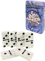 Домино всемирно известная и любимая настольная игра для взрослых и детей. Игра увлекательна и полезна для мыслительной деятельности: чтобы выиграть, придётся проявить стратегические способности. Материал фишек: пластик. Материал коробки: жесть. Размер коробки: 20,5х12,5х4 см.