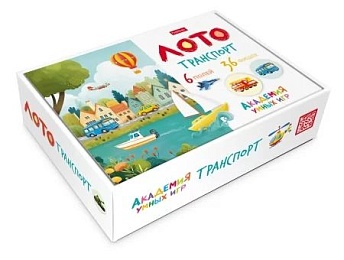 Лото детское "Транспорт" 36 фишек, 6 полей, в коробке