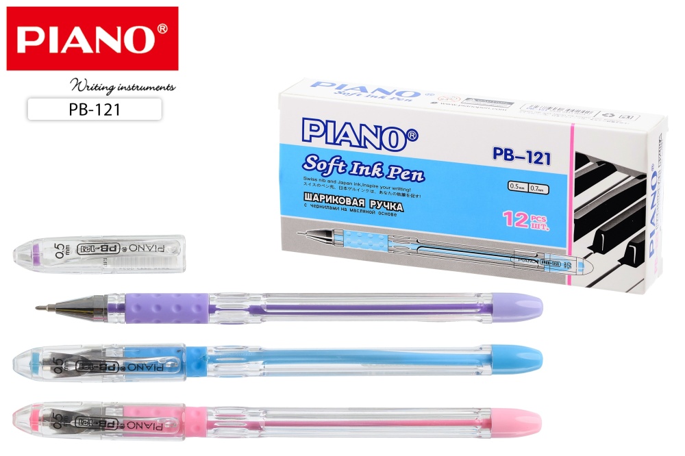 Ручка шариковая. На масл.основе. "Piano". Прозр.корпус, игольч.наконечник 0,5mm. Синяя