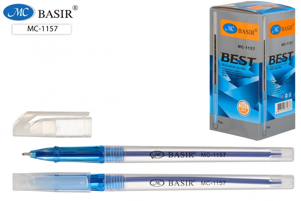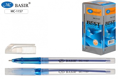 Ручка шариковая: на масляной основе, белый полупрозрачный корпус, синий держатель, цвет чернил-синий.