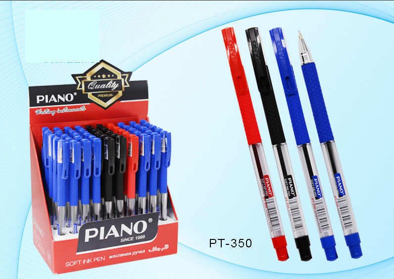 Ручка шариковая: на масляной основе: "Piano"; пластиковый прозрачный корпус, резиновый держатель, прозрачный колпачок с цветным клипом .в цвет чернил., красная..0,5 mm.