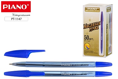 Ручка шариковая. PIANO CLASSIC. На масляной основе. Полупрозр.синий корпус, синий.колпачок. 1 мм. Синяя