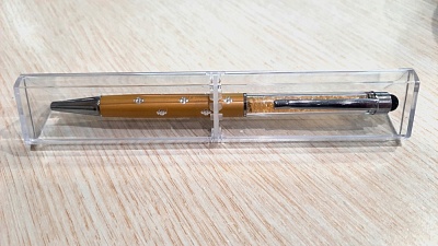 Ручка-стилус подарочная, с поворотным механизмом в прозрачном пластиковом футляре, бежевый корпус с цветочками