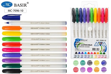 Ручки шариковые. На масляной основе. Белый треугольный корпус. 1 mm. 10 цв.