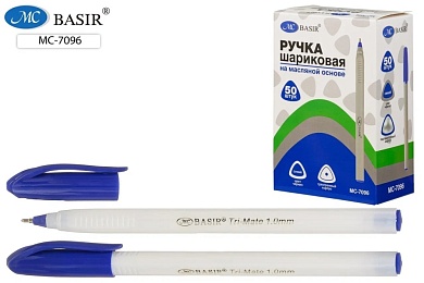 Шариковая ручка с чернилами на масляной основе: белый перламутровый корпус, форма корпуса треугольная, синий колпачок; 1 mm, цвет чернил синий.