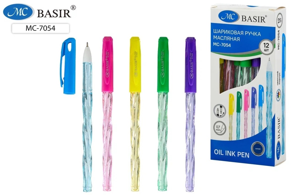 Шариковая ручка с чернилами на масляной основе: винтовой, тонированный, пластиковый цветной с блёстками корпус .ассорти., цветной колпачок, 0,7 mm, цвет чернил-синий.