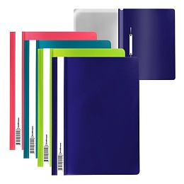 Папка-скоросшиватель формата А4 из высококачественного пластика с текстурой поверхности "софт-тач", на которой не видно отпечатков пальцев и мелких царапин. Предназначена для быстрого сшивания, хранения и просмотра документов. Цвет папки ассорти: бирюзовый, индиго, коралловый, лайм. Механизм - механический скоросшиватель; прозрачный верхний лист; усиленный пластиковый корешок с прозрачной полосой для информационной карточки. Папка вмещает до 130 бумажных листов. Размер - 312х230мм, толщина верхнего листа - 0.12мм, толщина нижнего листа - 0.18мм. Код и баркод на каждой единице товара.