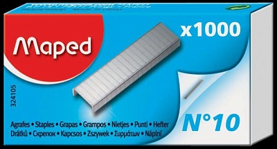 Скобы для степлера 10 Maped "Standard никелированные.Со сшивающей способностью до 20 листов.  В картонной упаковке содержится 1000 скоб.