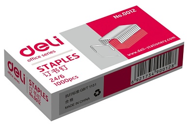 Скобы для степлера 24/6 Deli E0012N оцинкованные кор.карт. (упак.:1000шт.)