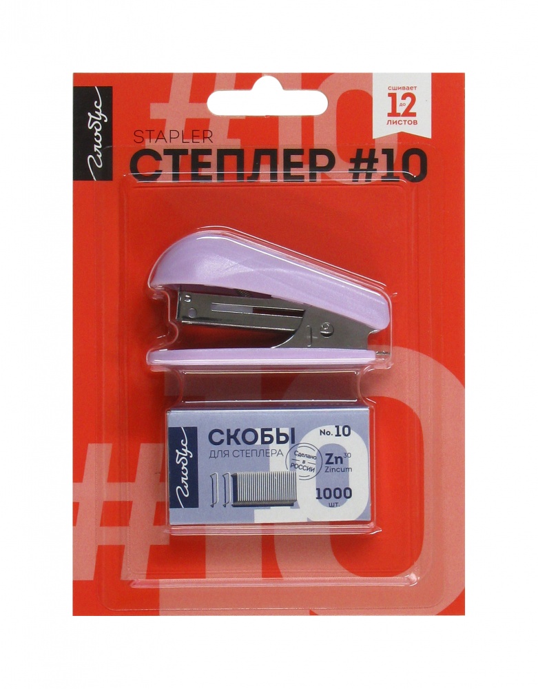 Степлер Globus 10 на 12листов + скобы 10