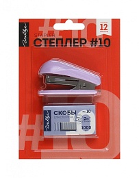Степлер и скобы в наборе 10 (малый). Степлер имеет металлический механизм и пластиковую вставку. Пробивает до 12 листов. Скобы для степлера 10 выполнены из качественного металла с цинковым покрытием. Предназначены для степлеров со сшивающей способностью до 20 листов (для бумаги толщиной 0,07 и 0,08 мм). В картонной упаковке 1000 скоб.