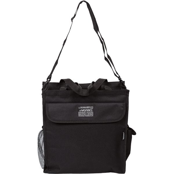 Сумка для дополнительных занятий "deVENTE. Black" A4+ (31x36x12 см) текстильная, 1 отделение на молнии, 1 передний карман на липучке, боковой карман на липучке для стакана-непроливайки, боковой сетчатый карман, с 2-мя ручками и ремнем, черная