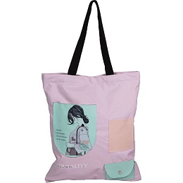 Сумка-шоппер "deVENTE. Mentality" 35х40 см, плотный полиэстер, 1 отделение на магнитной кнопке, 3 внешних кармана из искусственной кожи, один из них на кнопке, каучуковая аппликация, 1 внутренний карман на молнии, с рисунком