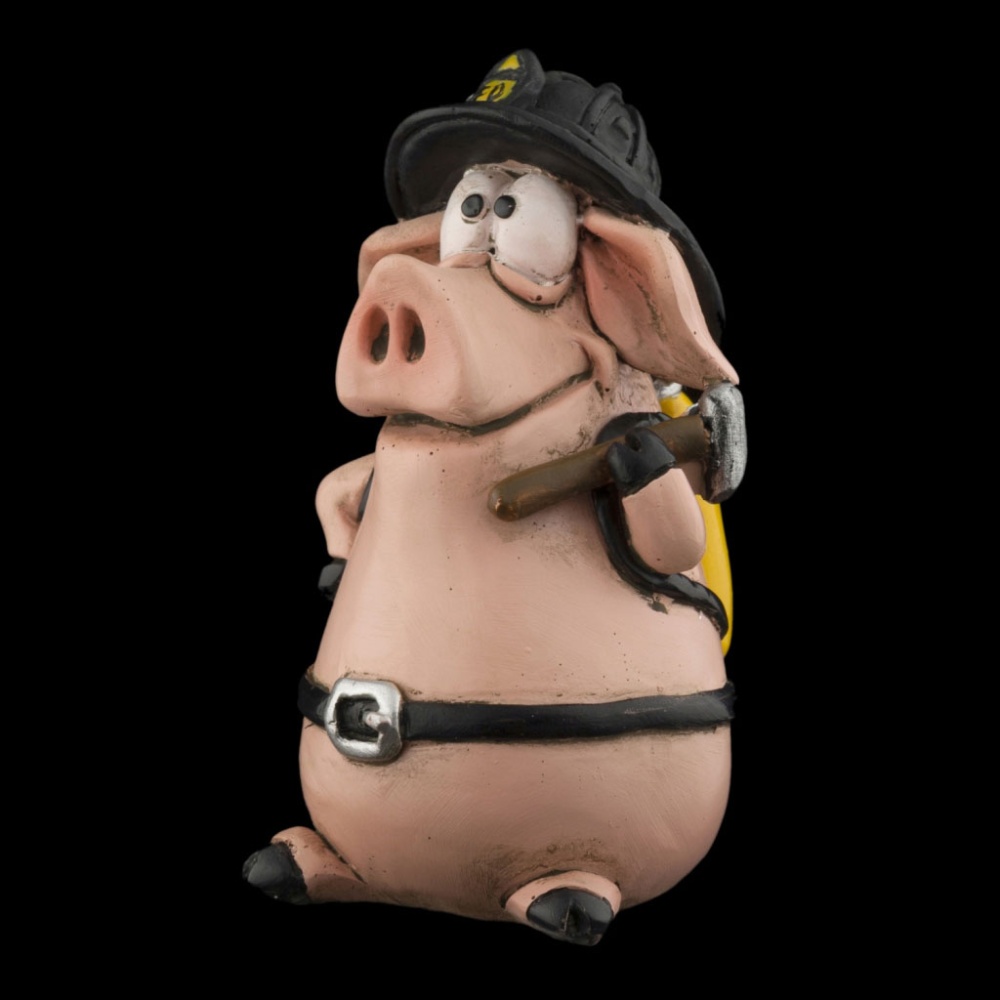 Забавная хрюша в образе пожарного - отличный сувенир. Изделие отличается компактным размером и обилием интересных деталей. Групповая упаковка предназначена только для безопасной транспортировки и хранения.