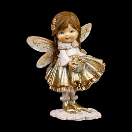 Очаровательная фея выполнена в золотом цвете. Тонко прорисованные детали подчеркнуты сверкающими блестками. Милый сувенир отлично впишется в любой интерьер и поможет создать атмосферу волшебства и уюта. Групповая упаковка предназначена только для безопасной транспортировки и хранения.