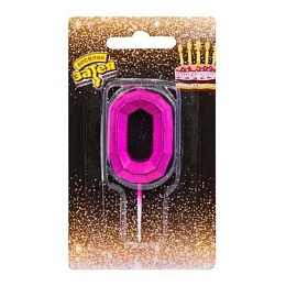 Свеча-цифра "0" Диамант Маджента, 4,5см.