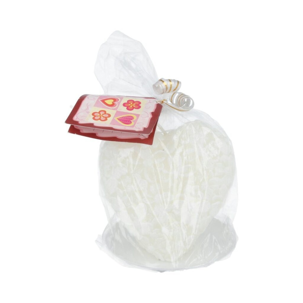 Свеча фигурная на подсвечнике кремовое сердце с узорами и цветами. Время горения: 6 часов. В индивидуальной подарочной упаковке. Хорошая идея для подарка
