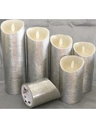 Свеча светодиодная LED 7*15см "Серебристый вечер" теплый желтый свет, без пульта