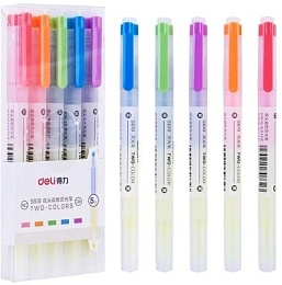 Набор текстовыделителей "Deli" 6 цв., двустор., 5 штук+желтый цвет на каждом