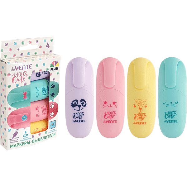 Набор текстовыделителей deVENTE 100% Cute" 4 цв., 1-5мм, мини, пастель