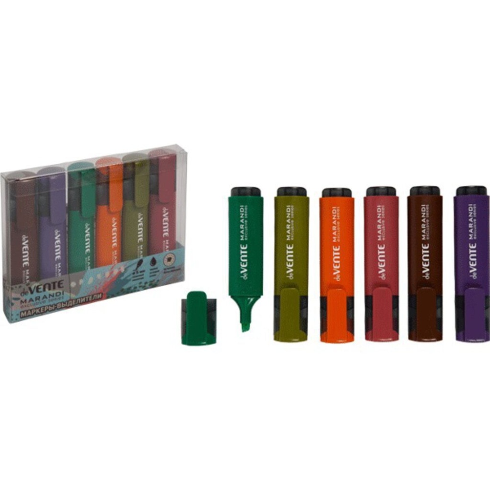 Набор маркеров-выделителей "deVENTE. Marandi" (06 цв. - фисташк., лаванд., персик., аквамарин, капучино, пыльная роза) плоский корпус, скошенный наконечник, ширина линии 1-5 мм, в пластиковом блистере