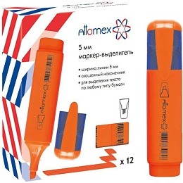 Маркер-выделитель "Attomex" плоский корпус с клипом, скошенный наконечник, ширина линии 1-5 мм, оранжевый