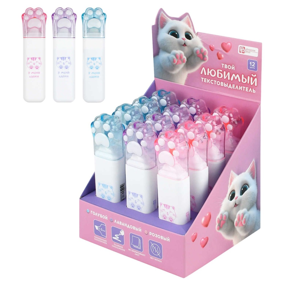 Текстовыделитель "Феникс+. Пушистые лапки" голубой, розовый, сиреневый