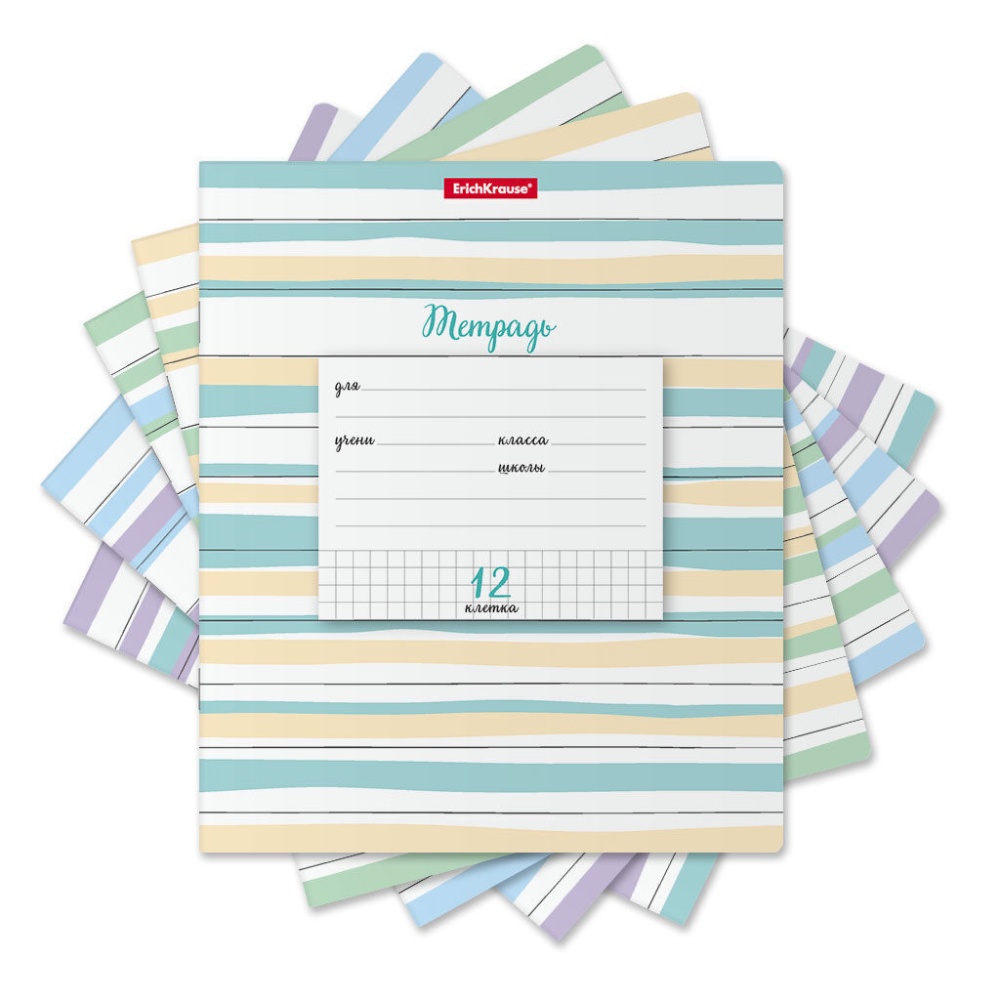 Тетрадь школьная ученическая ErichKrause Optima Lines ассорти, 12 листов, клетка (в плёнке по 10 шт.