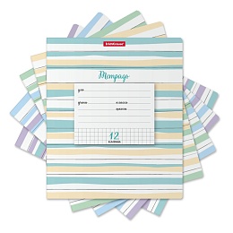 Тетрадь школьная ученическая формата А5+ (170х203 мм). Обложка из высококачественного мелованного картона плотностью 180 г/м2. В блоке 12 листов в клетку с полями. Бумага офсетная плотностью 60 г/м2. Цвет линовки - синий. Скругленные уголки обложки и блока. Тип скрепления - скоба. Тетради разного дизайна упакованы в термоусадочную пленку по 10 штук.