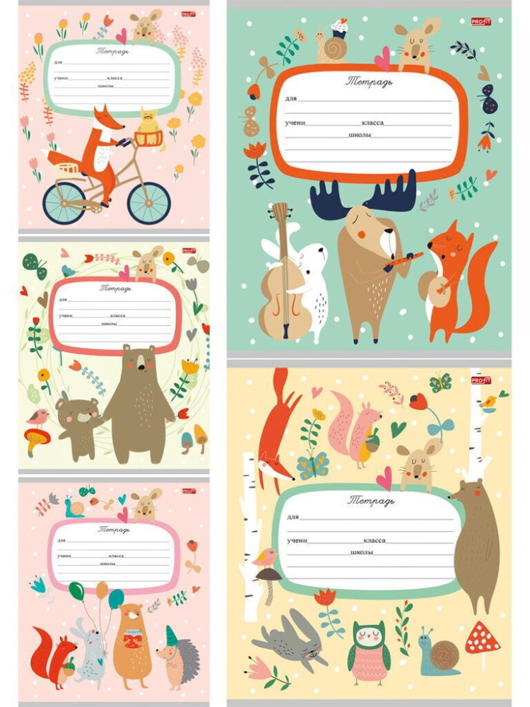 Тетрадь А5 12л косая лин. с доп.горизонт.лин. Проф-Пресс "Лесные зверушки-1" 5диз.в сп.,белизна 92%
