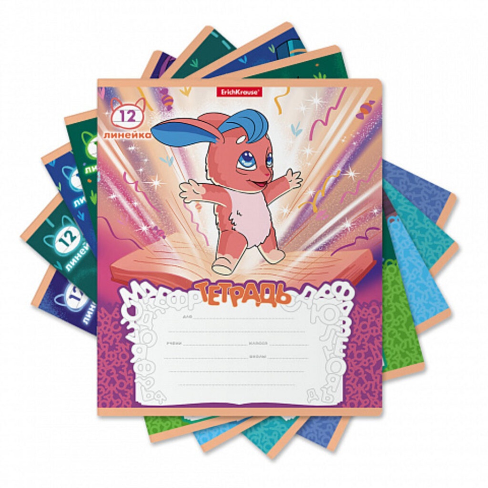 Тетрадь школьная ученическая ErichKrause Волшебный друг, 12 листов, линейка (в плёнке по 10 шт.)_MIX