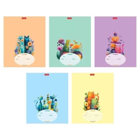 Тетрадь А5 12л лин. Hatber "Цветочные коты" обл.мел.картон, тисн., 5диз.в блоке