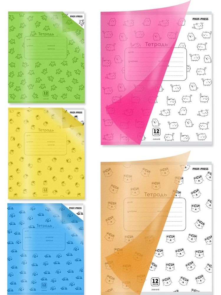 Тетрадь А5 12л лин. Проф-Пресс пласт.обл. "Неон зоо"