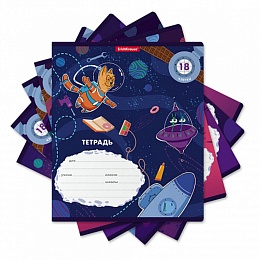 Тетрадь школьная ученическая ErichKrause Коты в космосе, 18 листов, клетка (в плёнке по 10 шт.)_MIX-